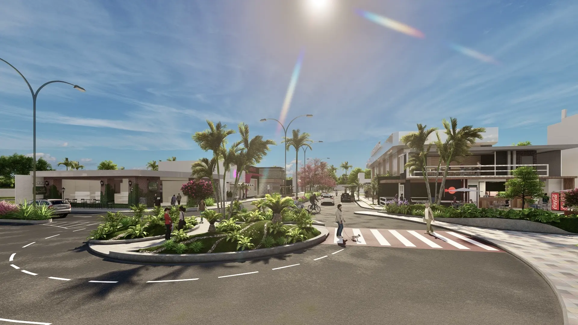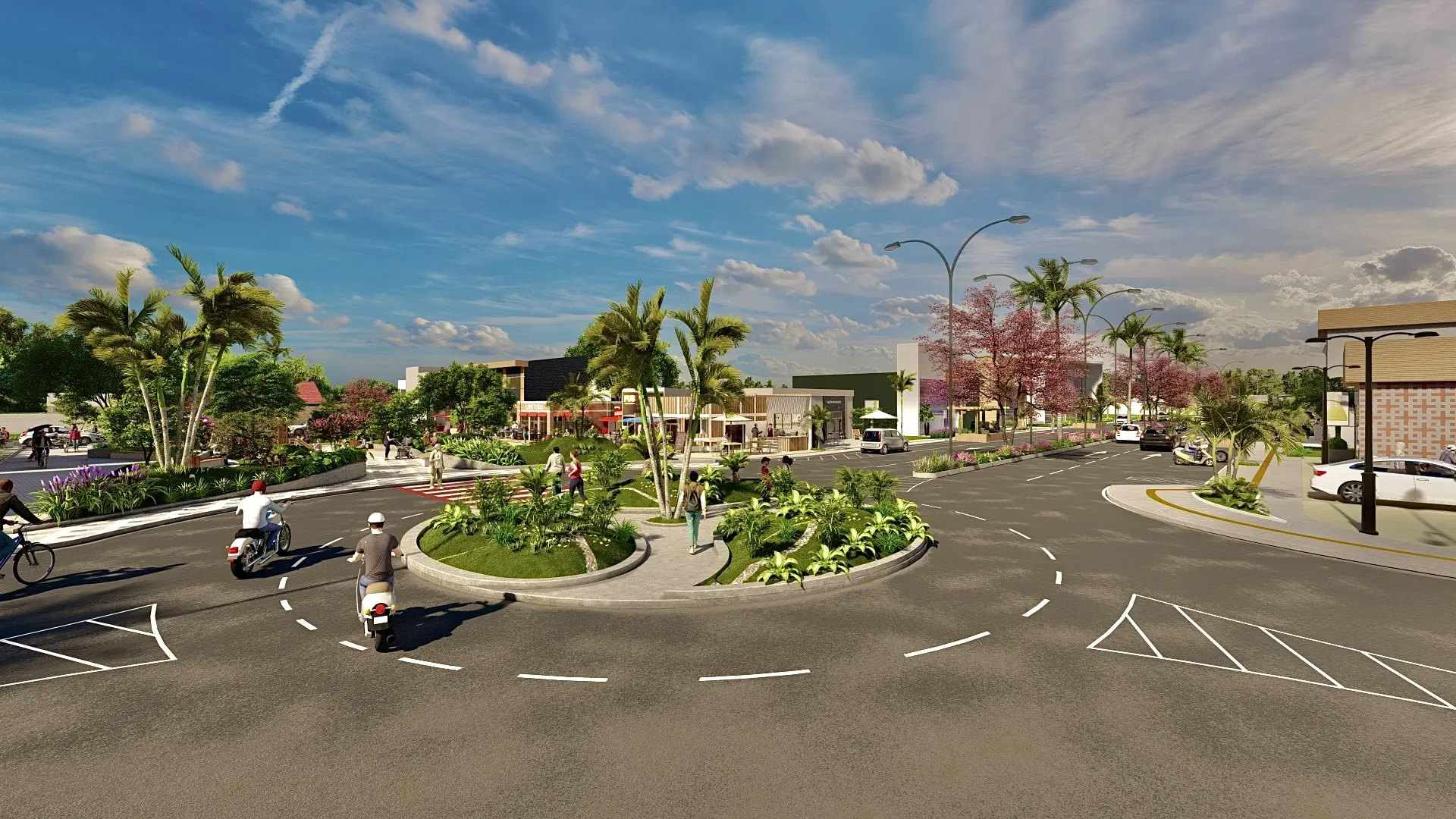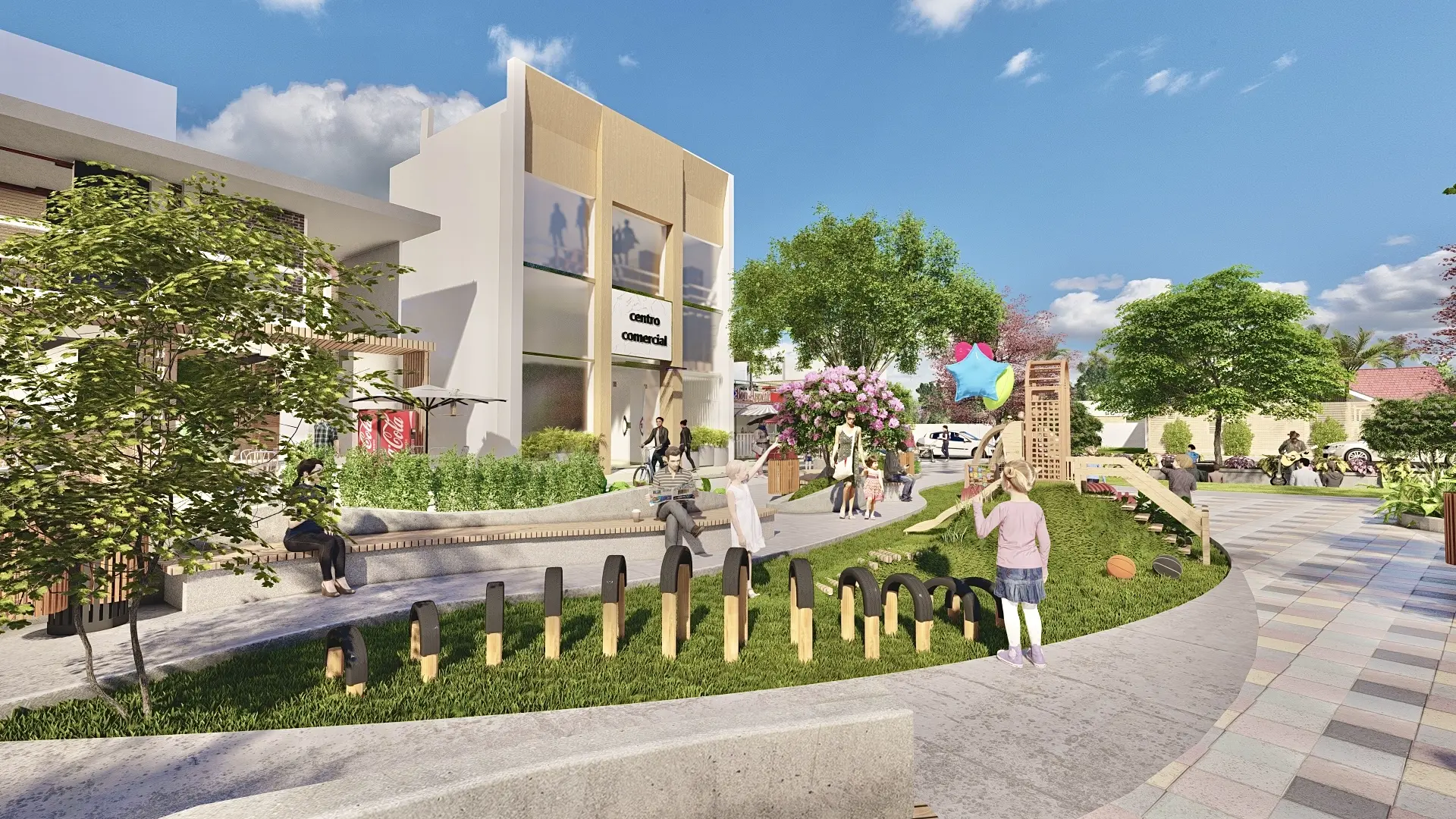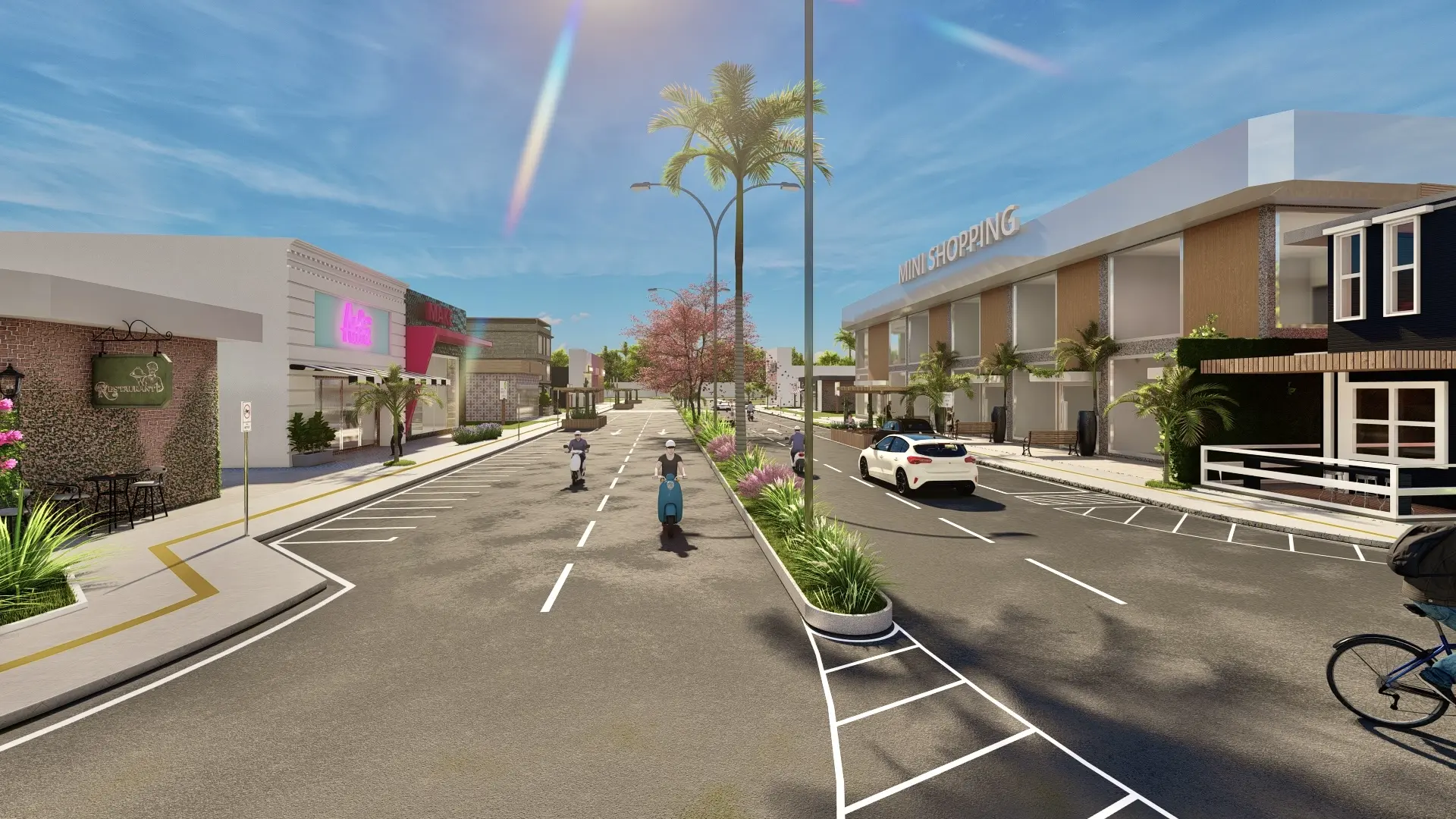 Destaque para o Pórtico na entrada e o Pet Park para os animais de estimação. A rua do comercio está repleta de lojas, cafés e restaurantes, e a Praça Central abriga eventos com uma atmosfera positiva.