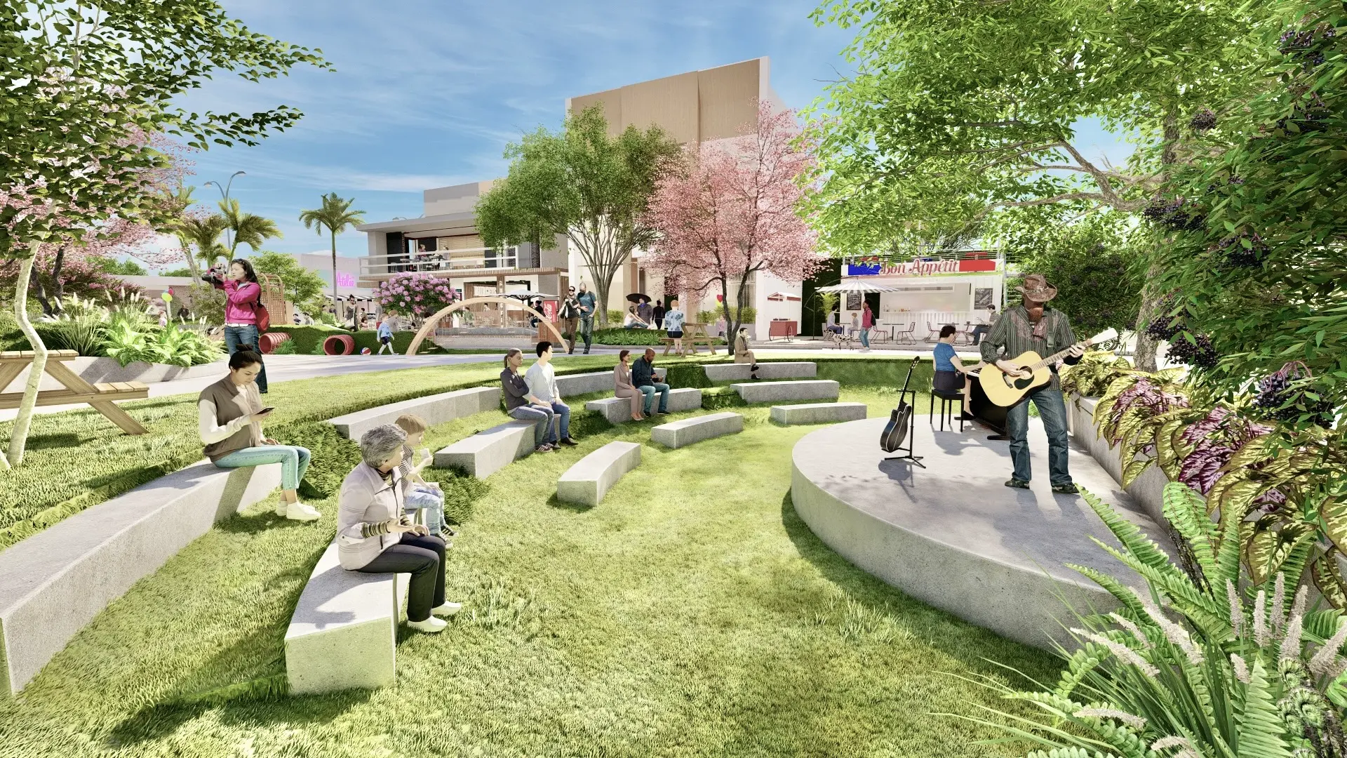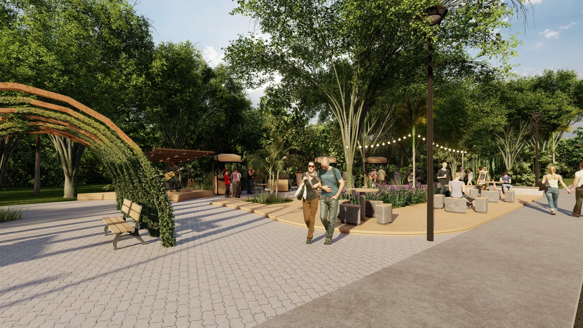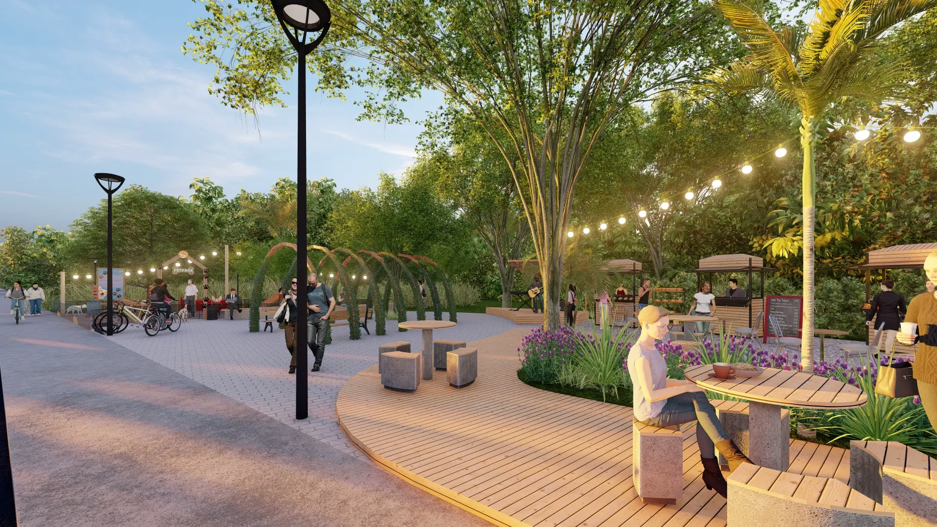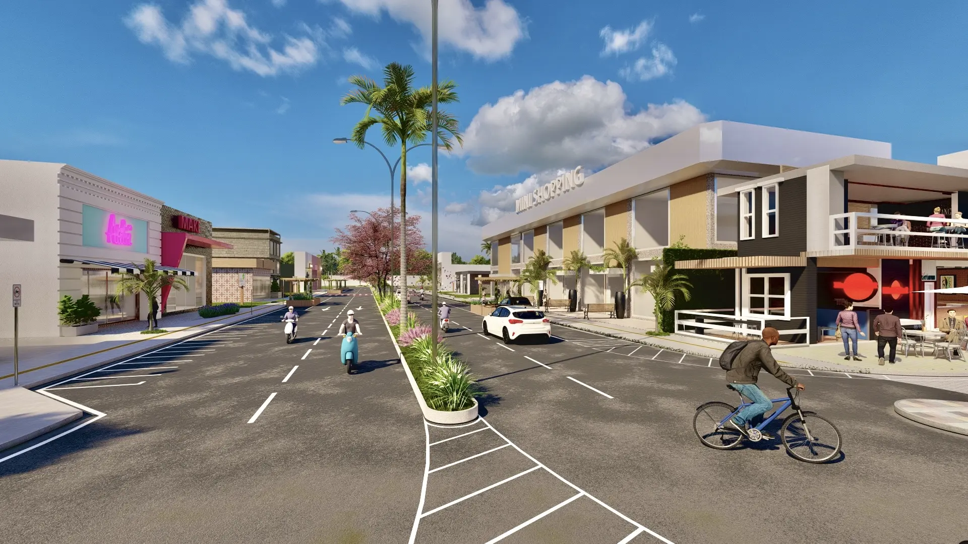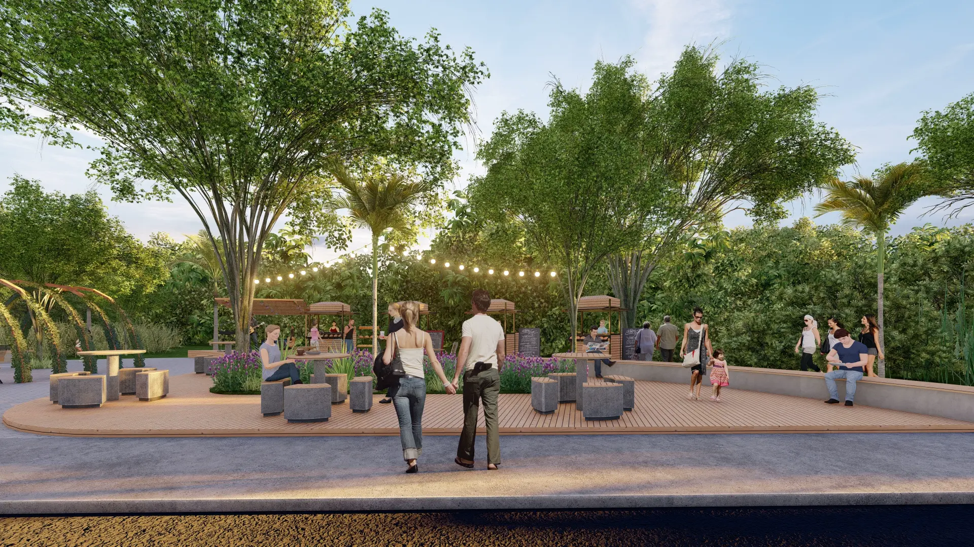 Destaque para o Pórtico na entrada e o Pet Park para os animais de estimação. A rua do comercio está repleta de lojas, cafés e restaurantes, e a Praça Central abriga eventos com uma atmosfera positiva.