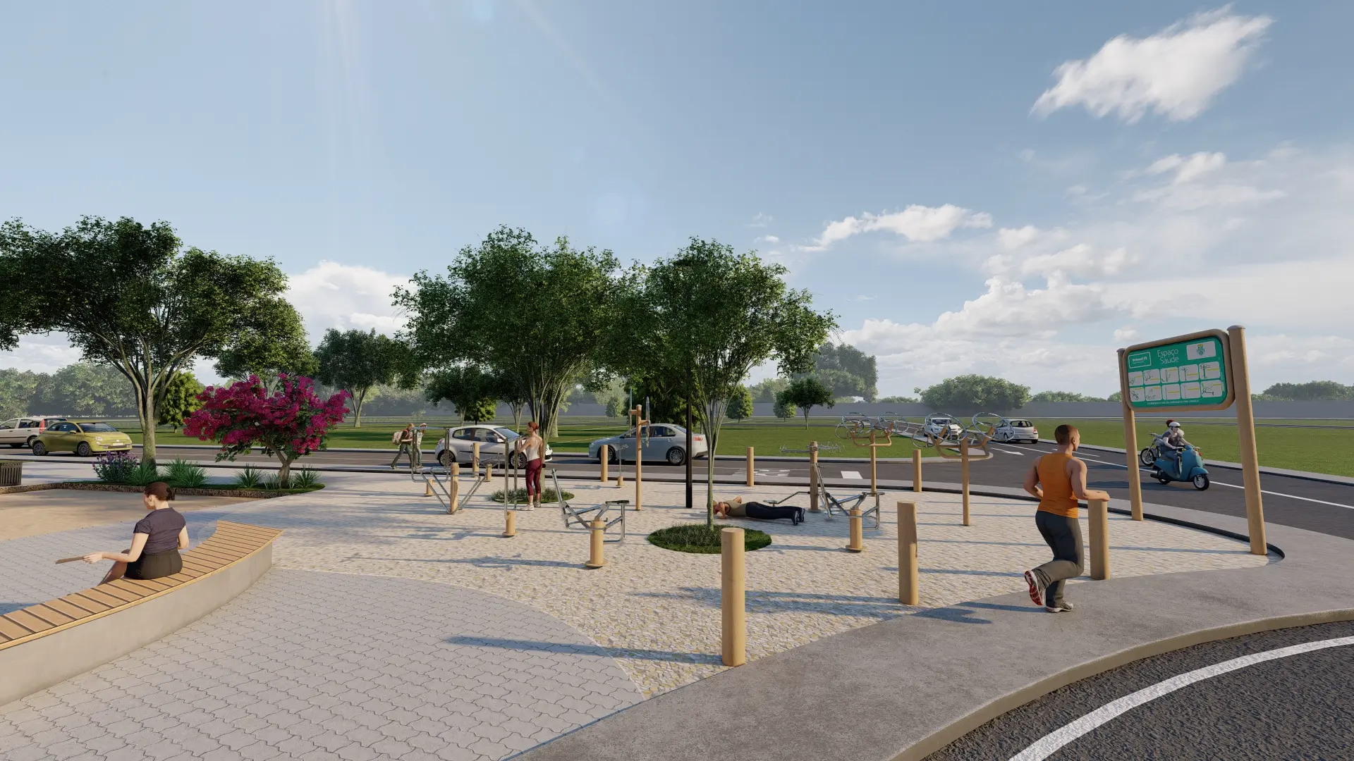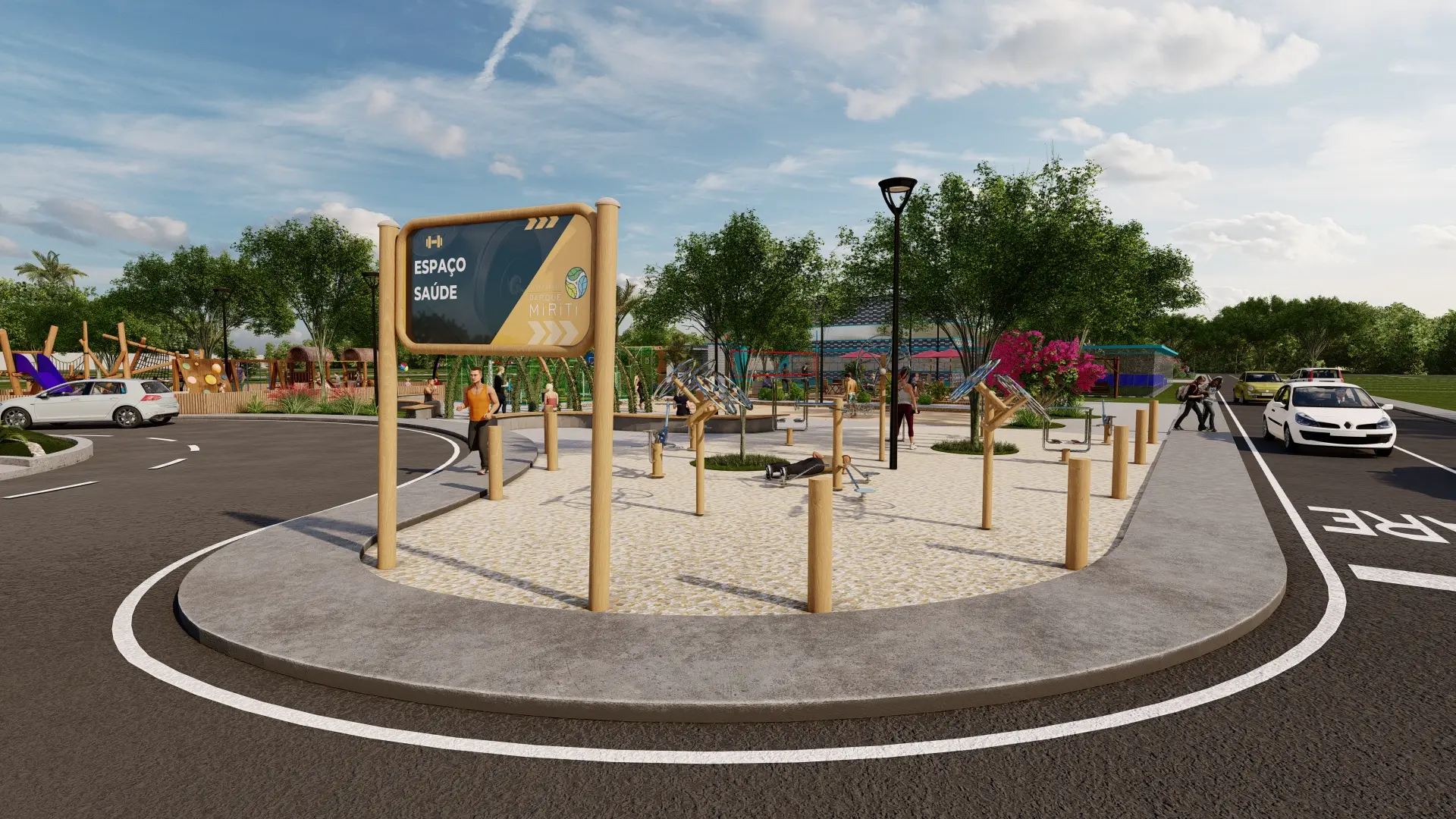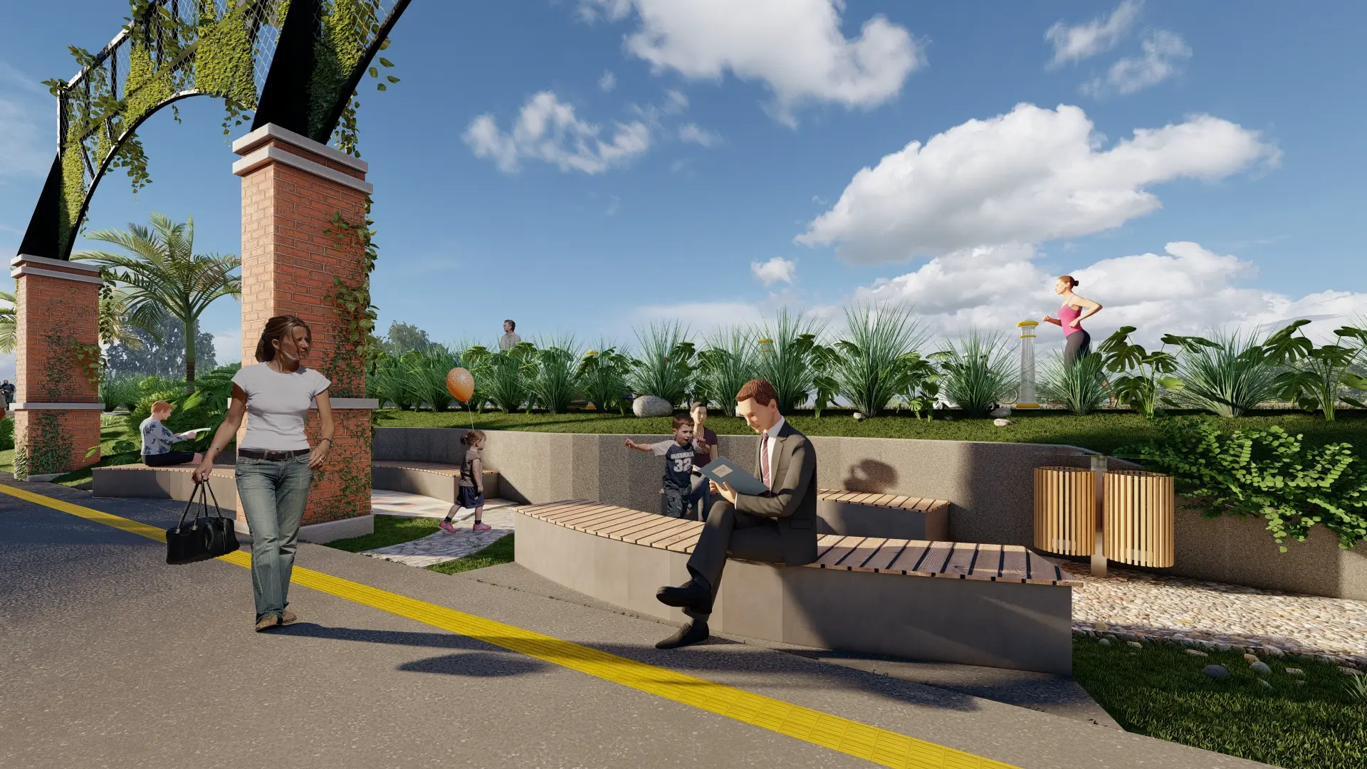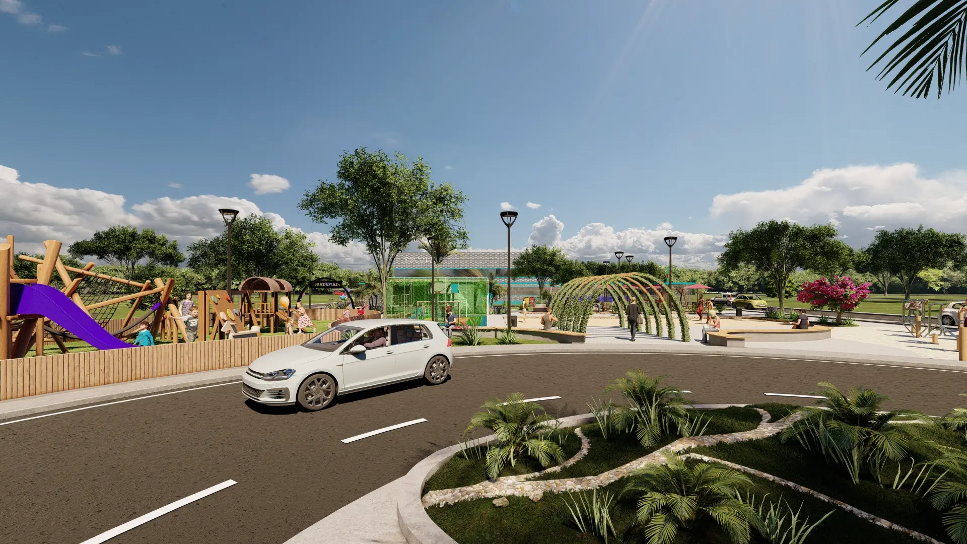 Com design elegante, colunas acolhedoras e uma atmosfera convidativa, este pórtico é a entrada perfeita para um espaço exclusivo, onde o conforto encontra a sofisticação. Uma estrutura de apoio para quem chega e sai do Parque Miriti.