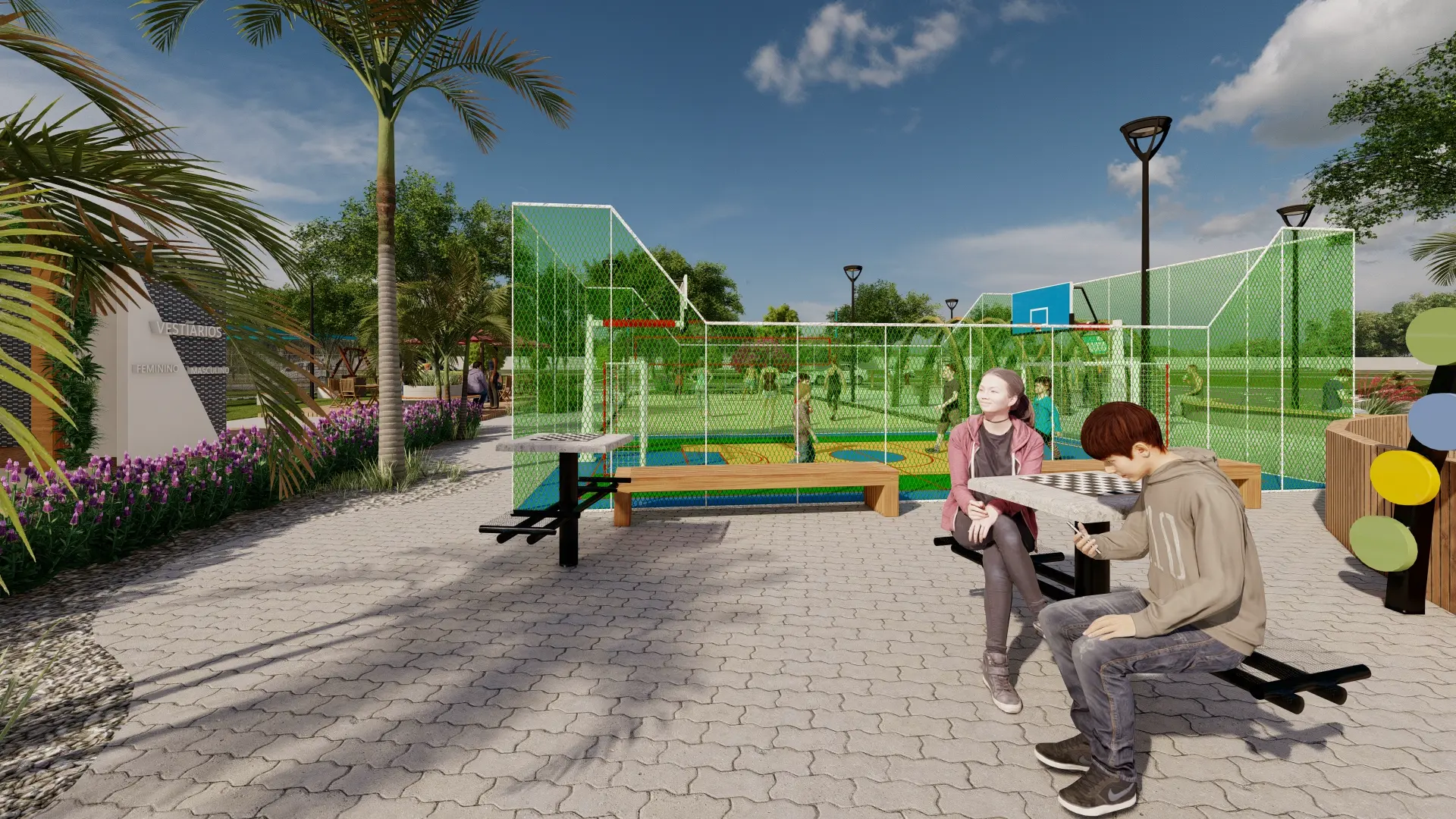 A praça esportiva é o local dinâmico do residencial, com quadras e áreas para exercícios. Perfeita para atividades esportivas, proporciona um ambiente ativo e saudável para os moradores.