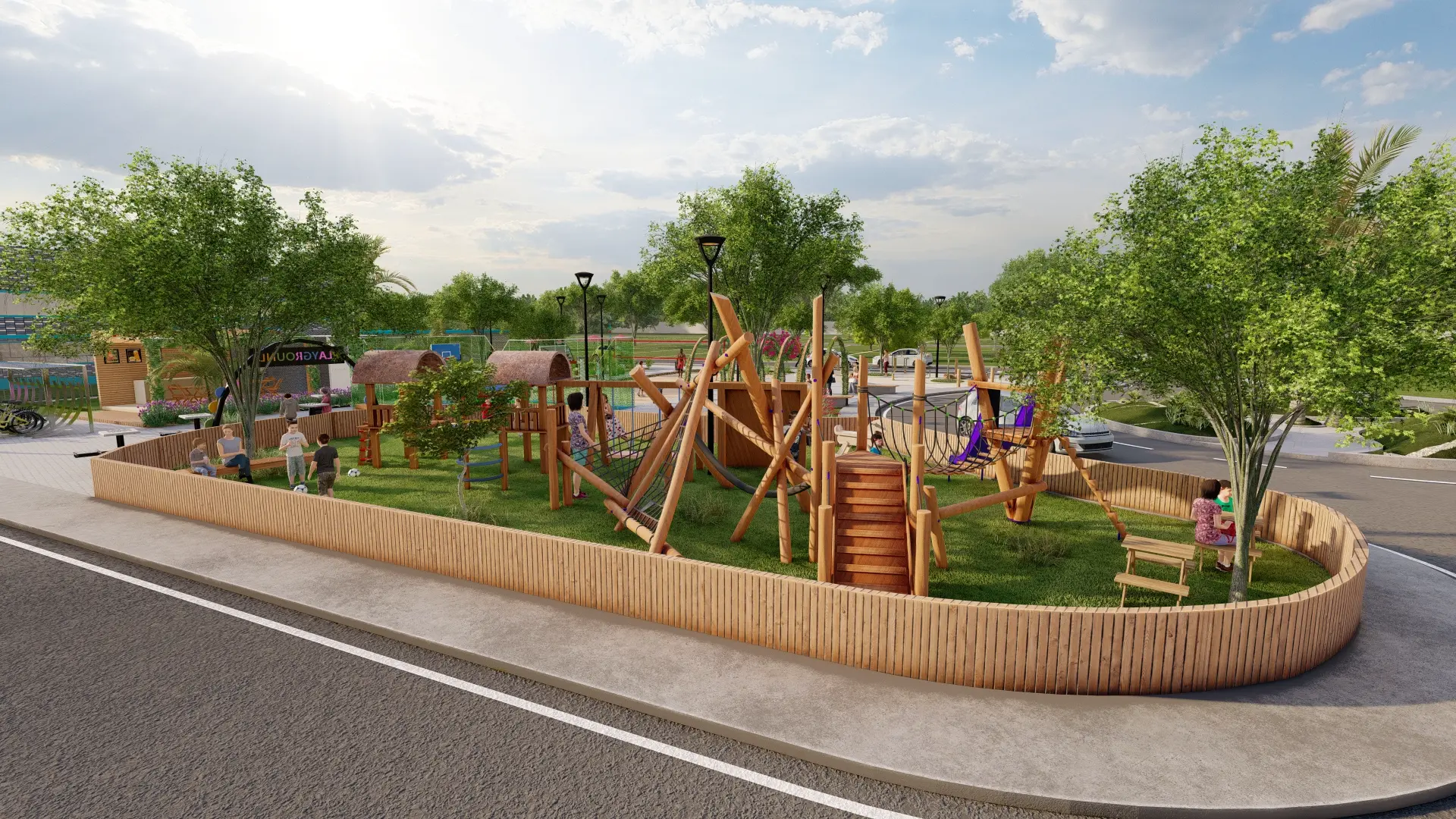Aconchegante praça no coração do residencial, com uma estrutura comercial, playground colorido, bancos convidativos e área verde. Ideal para encontros familiares e brincadeiras ao ar livre, proporcionando um espaço alegre e seguro para os moradores desfrutarem momentos de lazer.