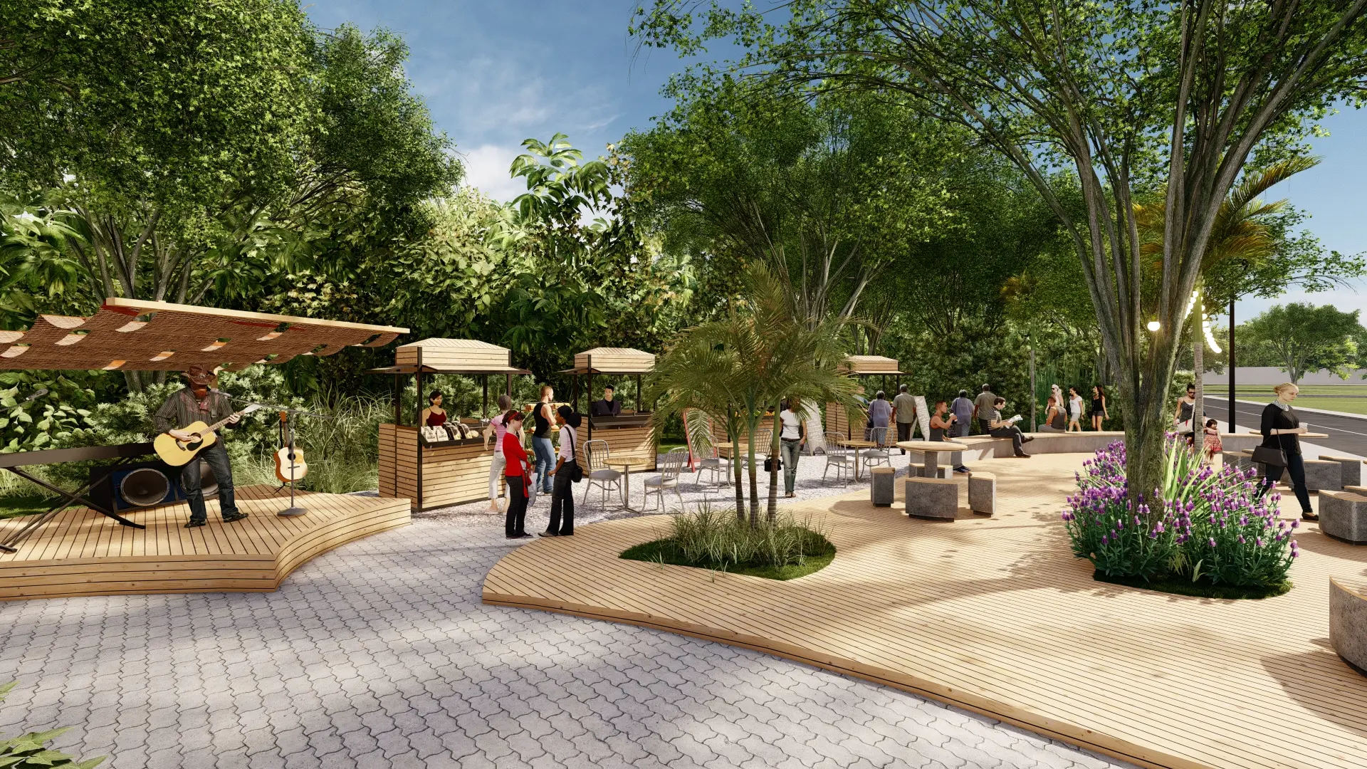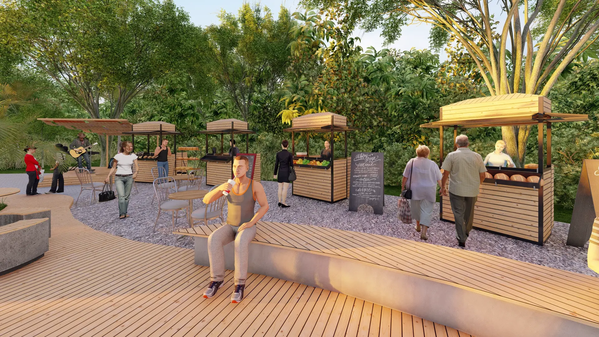 A pracinha do residencial é um ponto de encontro vibrante, com barraquinhas coloridas oferecendo tesouros locais. Um lugar charmoso para os moradores explorarem produtos artesanais e delícias gastronômicas em um ambiente descontraído e comunitário.